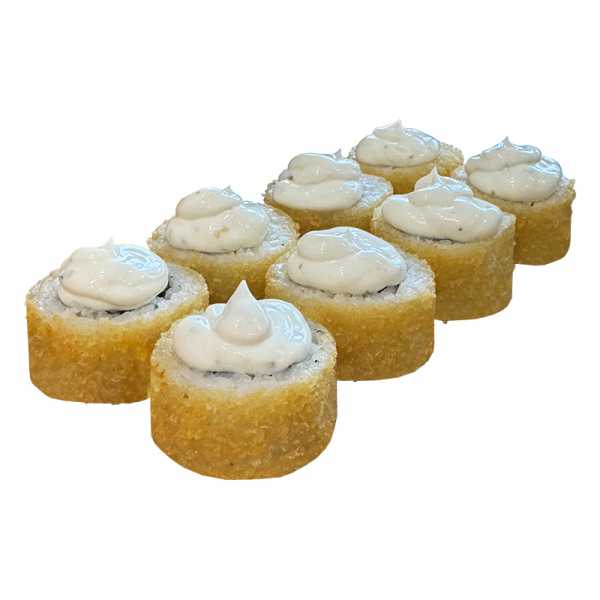 Рис, нори, лосось терияки, краб-крем, тамаго, сыр сливочный, соус спайси, кунжут ;