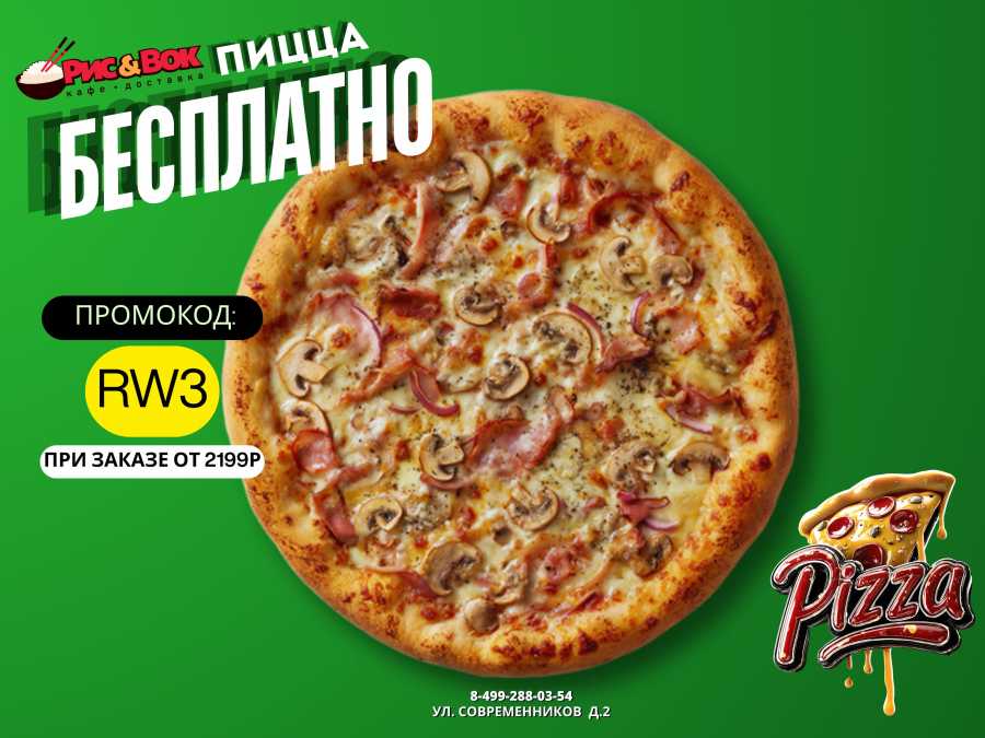 Пицца Деревенская 25см БЕСПЛАТНО при заказе на сумму от 2199р по промокоду: RW3