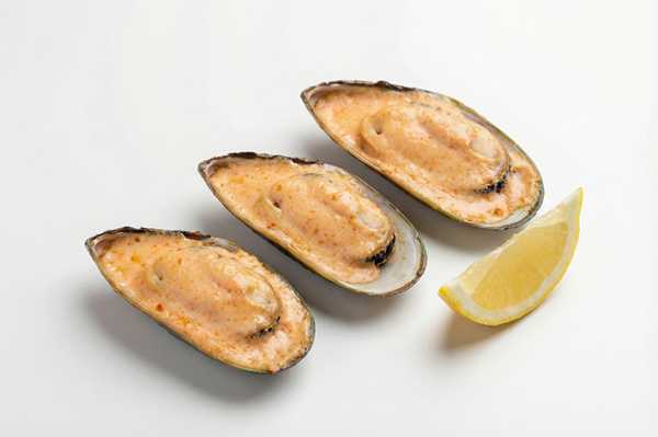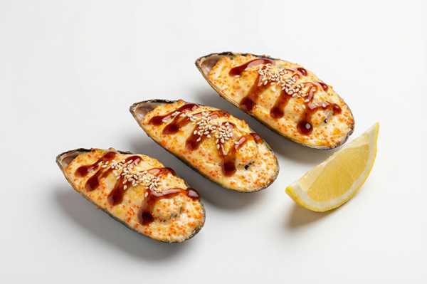 Мидии гигант, яки соус, спайси соус, лимон
