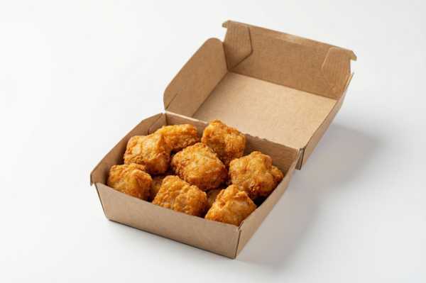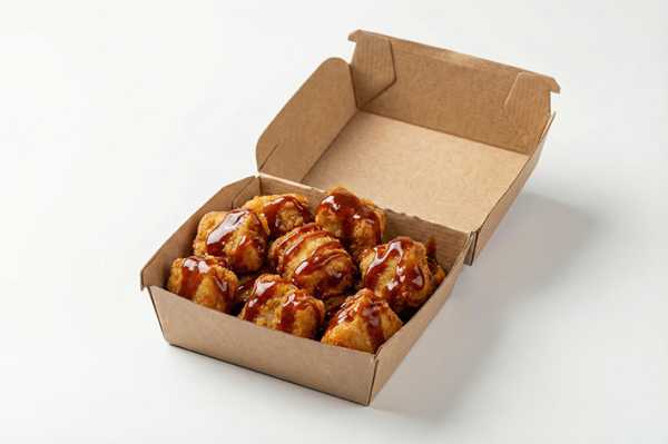 К порции подается соус Ранч 50гр. ; Куриное филе, панировка, кляр, соус барбекю, соус Ранч